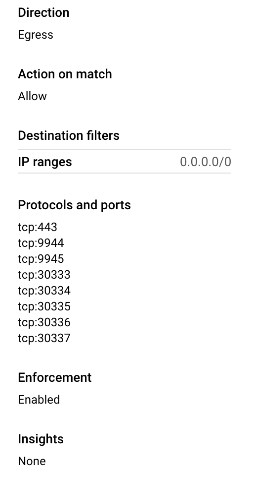 Add an Engress firewall policy so nodes can send data. Include the P2P port for all of your running nodes.