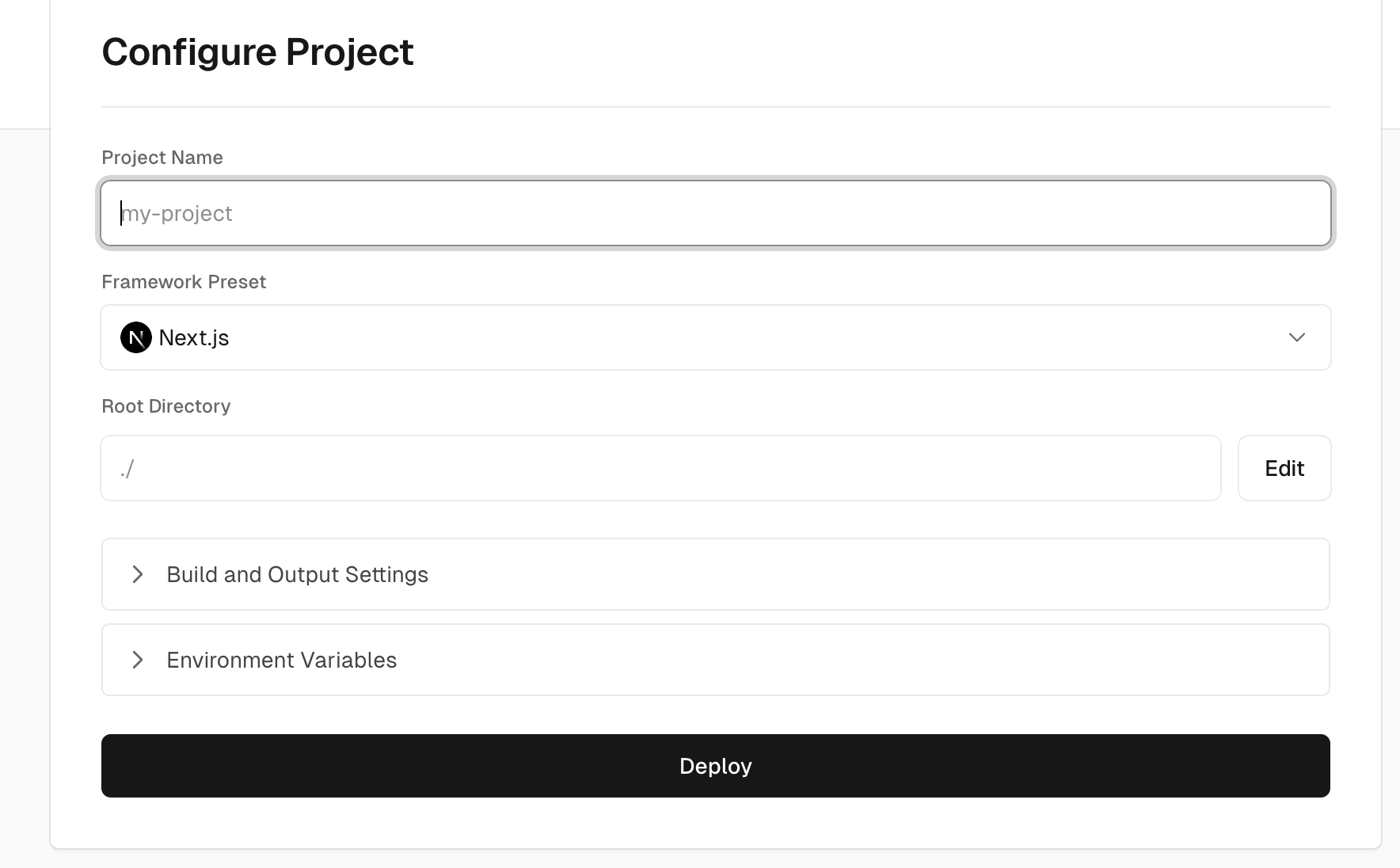 Name project then deploy. This will take several minutes.