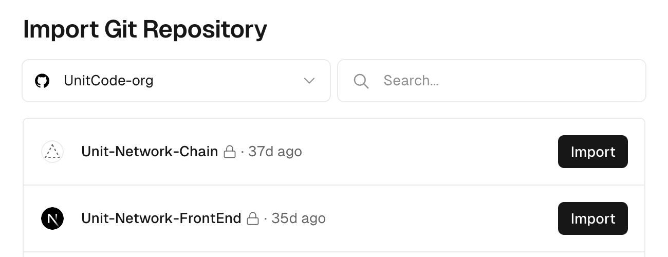 Unit-Network-FrontEndrepo to your new Vercel project.